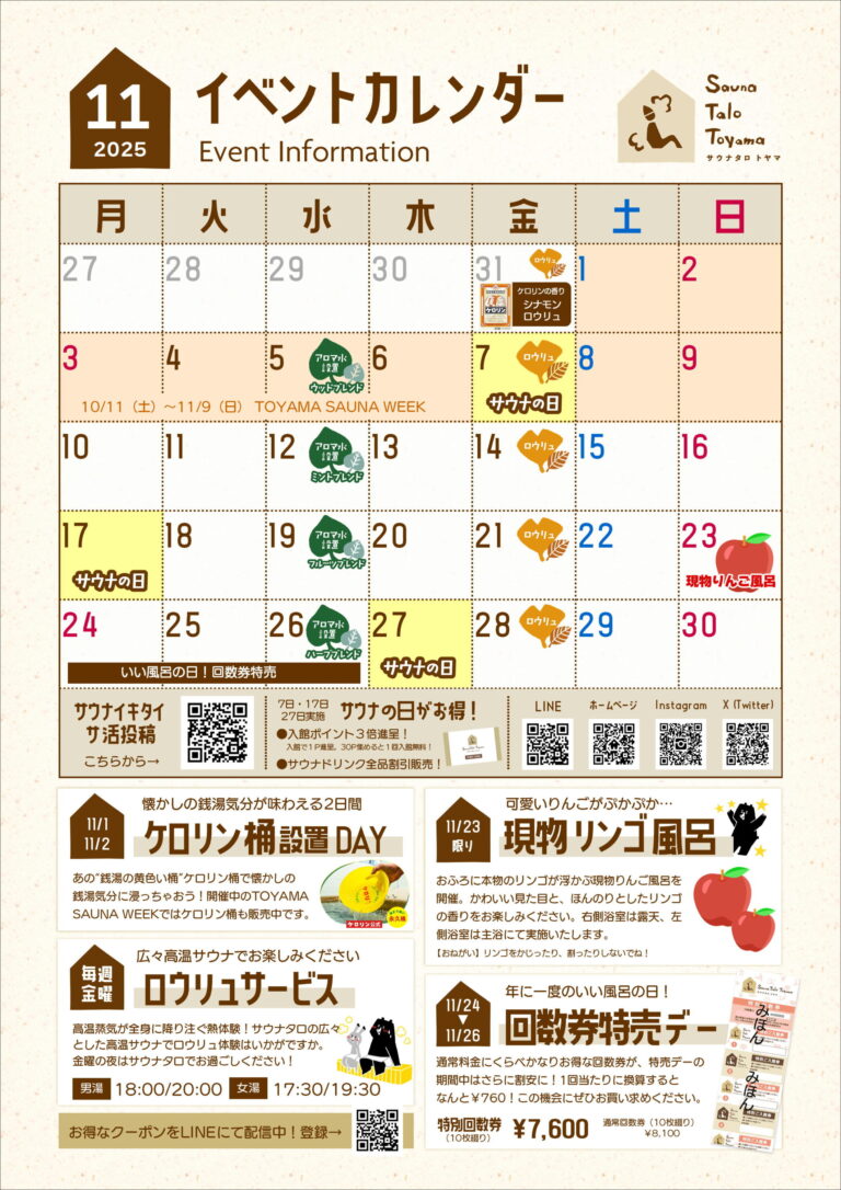 サウナタロトヤマ✨11月イベントカレンダー✨