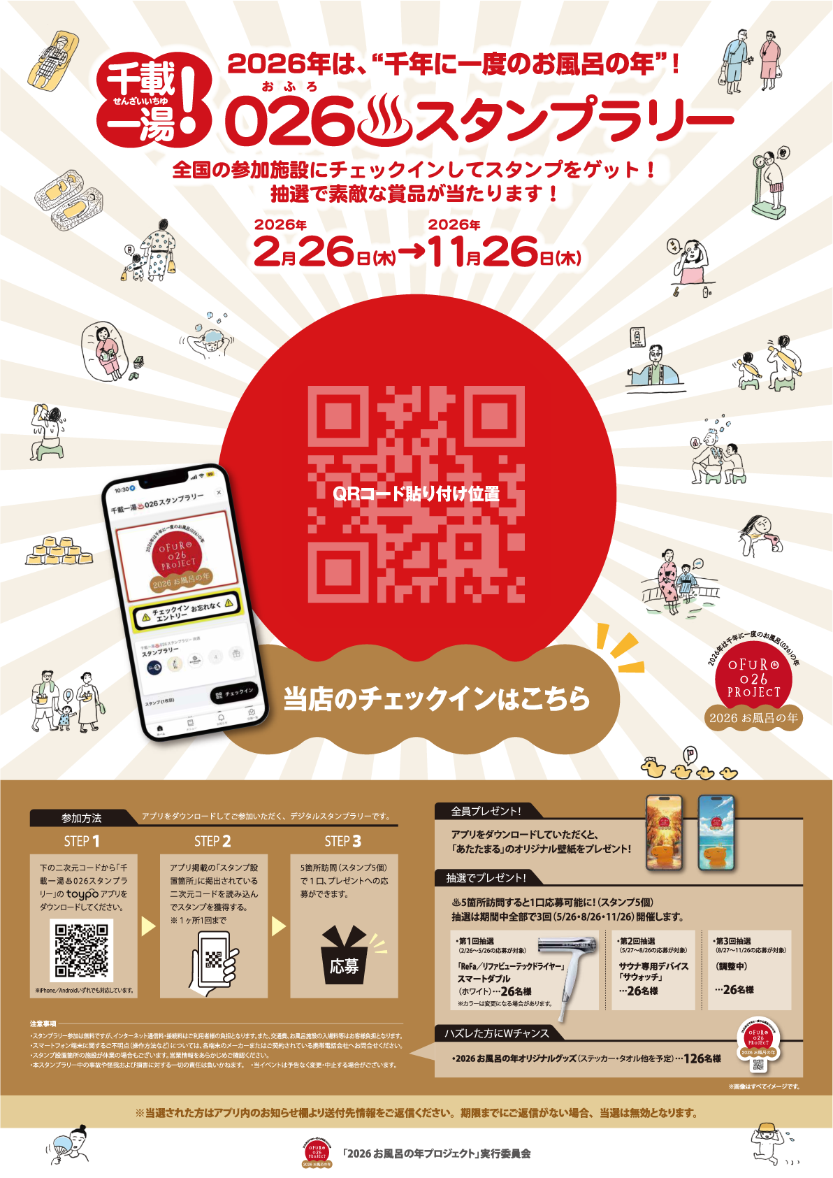 【千載一湯‼️】026(おふろ)♨️スタンプラリー開催‼️