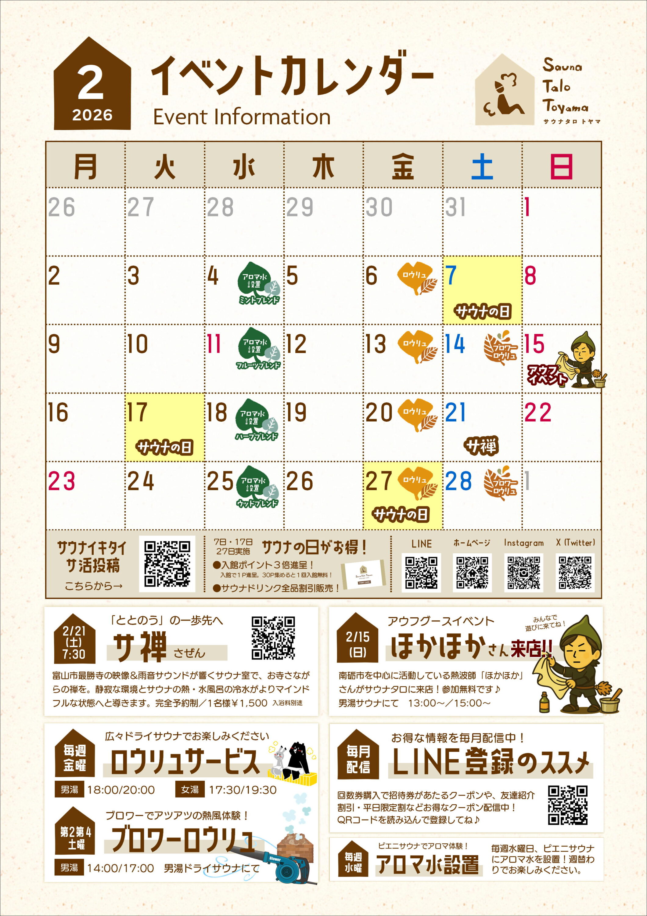 サウナタロトヤマ✨2月イベントカレンダー✨
