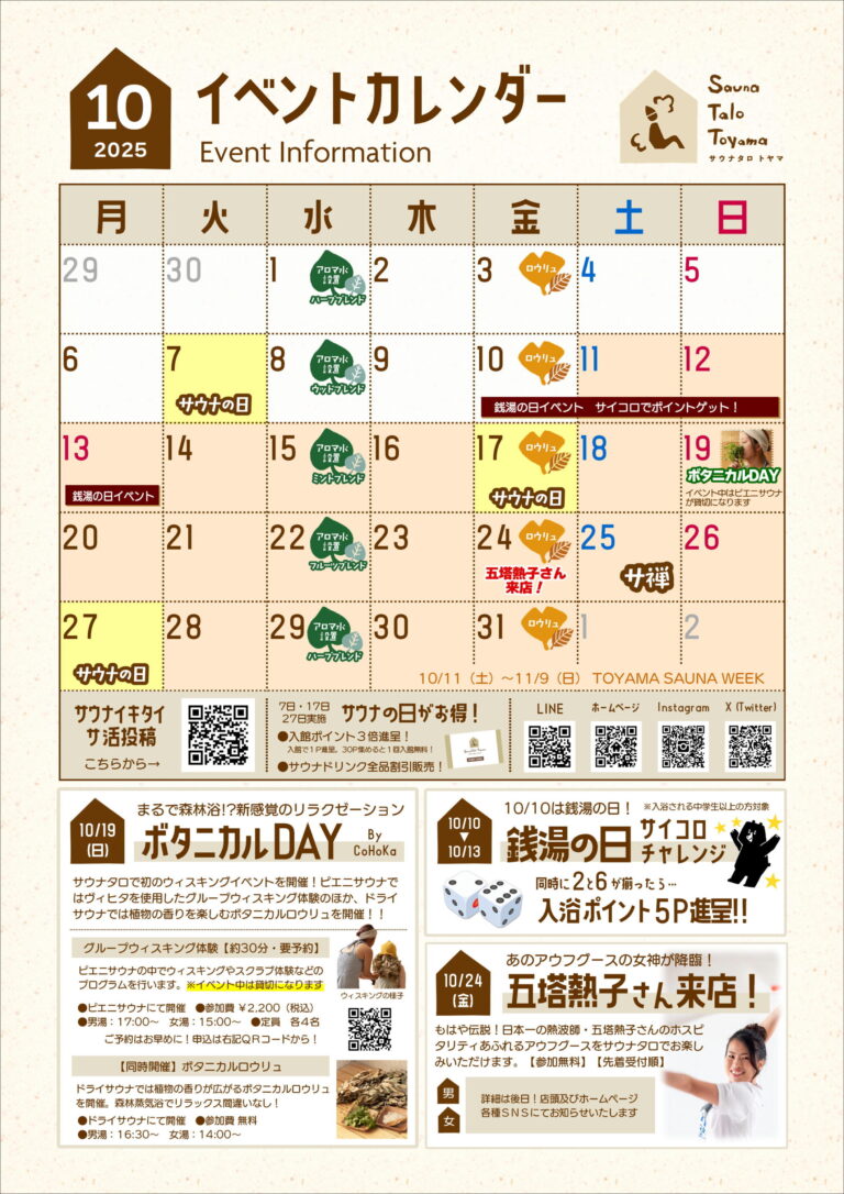 10月のSaunaTaloToyamaはこちら!